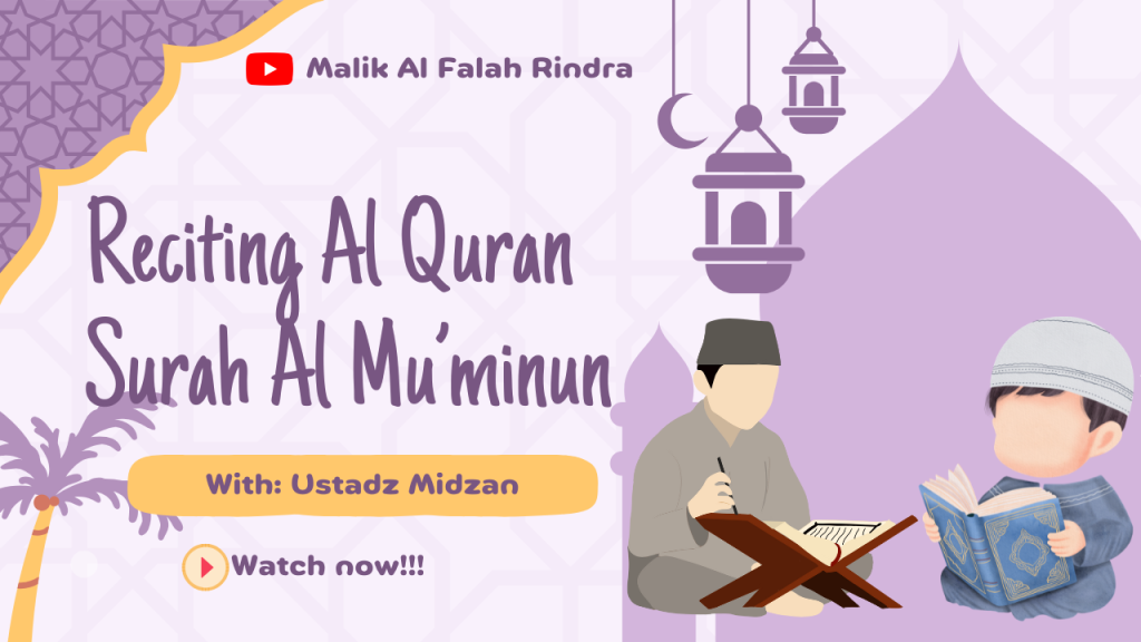 In this video, i recite surah Al Mu’minun with my Tahsin teacher his name is Ustadz Midzan and Ustadz Midzan correcting my recite like tajwid, the letter, and many more. If you interest in this project, you can watch my video at down below